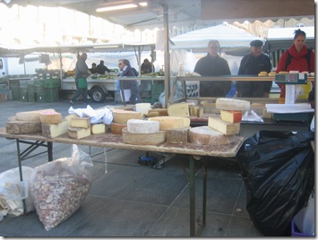The capital city of Bern's outdoor markets can thus proceed biweekly year-round. The quality of the offerings at this time of year is remarkable. Special to the locale is the huge selection of cheeses and cured and smoked meats and sausages that never find their way out of the country. I was particularly fond of the dried venison, first sampled on the flight over and a favorite while I was there. The produce, however, was the big surprise. Considering it was late January, the quality and variety (such as some 7 or 8 kinds and colors of carrots) were